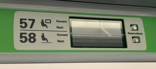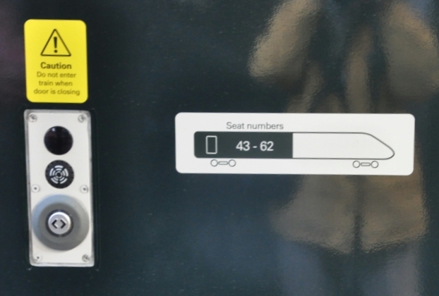 IET! Small labels near the door controls indicate which seat numbers are closest to that end of the coach (4).