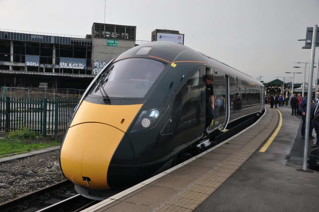The sleek new Hitachi Class 800/0 train was waiting at platform 3, attended by a large number of GWR and